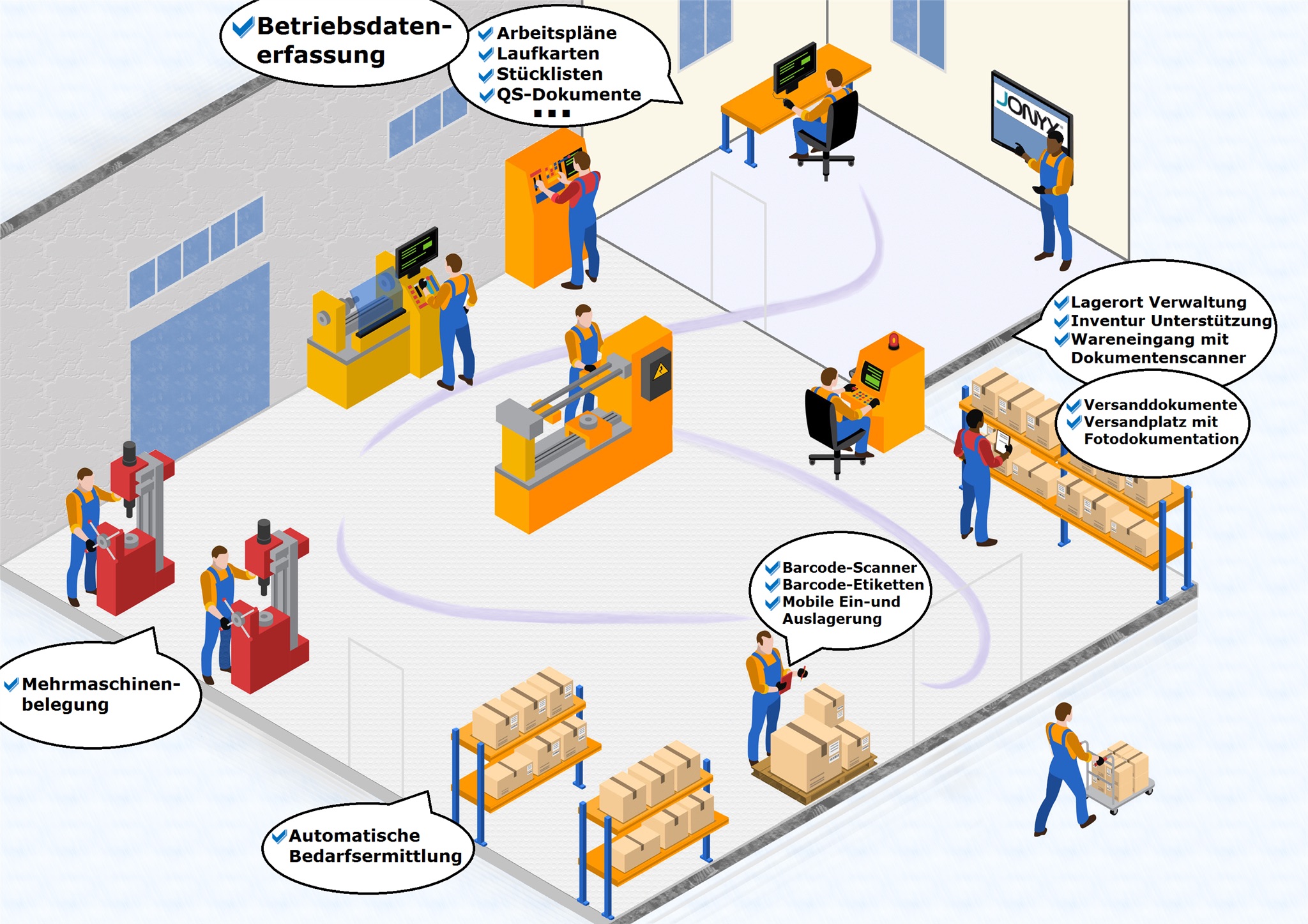 JONYX ist eine leistungsfähige ERP-Software, die produzierenden mittelständischen Unternehmen, eine Fülle von Funktionen in verschiedenen Bereichen bereitstellt und bei der Digitalisierung von Arbeitsprozessen unterstützt.